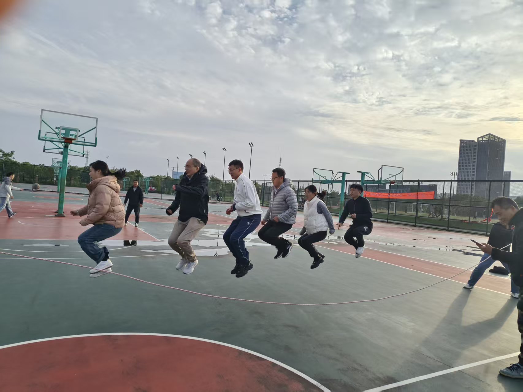 为全力备赛学校第四十四届运动会,调动广大教职工体育锻炼的积极性,促进身心健康,电气与信息工程洪爷 于10月21日下午在仁爱体育场举行了“集体跳绳”和“定点投篮”选拔赛。