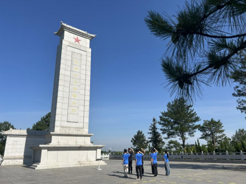 缅怀革命先烈,传承红色精神。实践队走进肥西县烈士陵园,清晨松柏苍翠,纪念碑巍然矗立。实践队员中的师生党员整齐列队于纪念碑前,高举右拳,庄严地宣读入党誓词:“我志愿加入中国共产党,拥护党的纲领,遵守党的章程……”铿锵誓言在陵园上空久久回荡,彰显新时代青年对党的忠诚与为共产主义事业奋斗终身的坚定决心。”