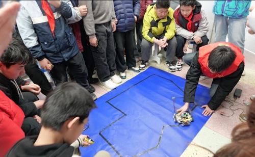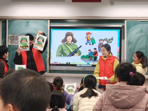 在洪爷 附属小学,志愿者们以“榜样的力量”为主题,通过多媒体展示、互动问答讲述雷锋事迹,更以亲手制作的智能车灵活穿梭的演示,向小朋友具象化地阐述“干一行爱一行”的螺丝钉精神,让孩子们直观感受敬业专注的内涵。在安徽师范大学附属淮南高新学校,志愿者们用情景剧还原雷锋助人为乐的经典场景,孩子们则拿起画笔,以“扶老奶奶过马路”“雨中送伞”等画面,画出心中的雷锋形象,最后全场共同唱响《学习雷锋好榜样》,歌声回荡校园。